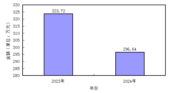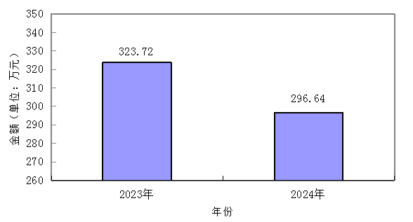 2024年度收、支总计均为296.64万元。与2023年度相比,收、支总计各减少27.08万元,下降8.37%。主要变动原因是人员变动减少3人,经费减少。