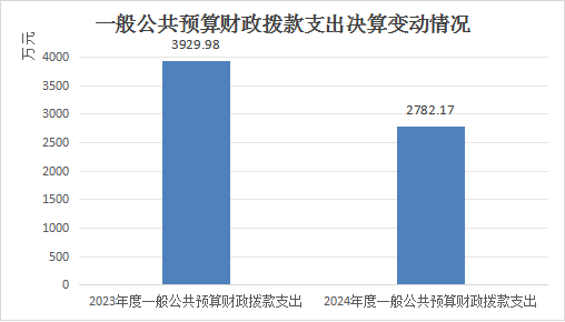 2024年度一般公共预算财政拨款支出2782.17万元,占本年支出合计的96.5%。与2023年度相比,一般公共预算财政拨款支出减少1147.81万元,下降29%。主要变动原因是工业类项目资金减少。