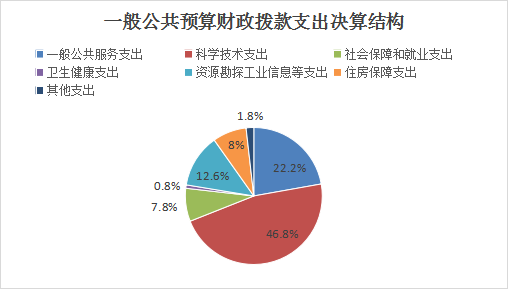 2024年度一般公共预算财政拨款支出2782.17万元,主要用于以下方面:一般公共服务支出617.54万元,占22.2%;科学技术支出1301.94万元,占46.8%;社会保障和就业支出215.57万元,占7.8%;卫生健康支出22.16万元,占0.8%;资源勘探工业信息等支出350.98万元,占12.6%;住房保障支出224.16万元,占8%;其他支出49.82万元,占1.8%。