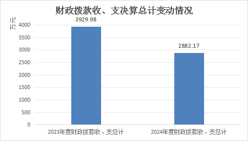 2024年度财政拨款收、支总计均为2882.17万元。与2023年度相比,财政拨款收、支总计减少1047.81万元,下降26%。主要变动原因是工业类项目资金减少。