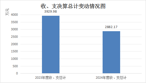 2024年度收、支总计均为2882.17万元。与2023年度相比,收、支总计各减少1047.81万元,下降26%。主要变动原因是工业类项目资金减少。