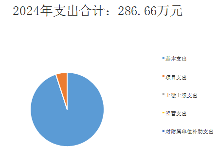 2024年度本年支出合计286.66万元,其中:基本支出271.24万元,占95%;项目支出15.43万元,占5%;上缴上级支出0万元,占0%;经营支出0万元,占0%;对附属单位补助支出0万元,占0%。