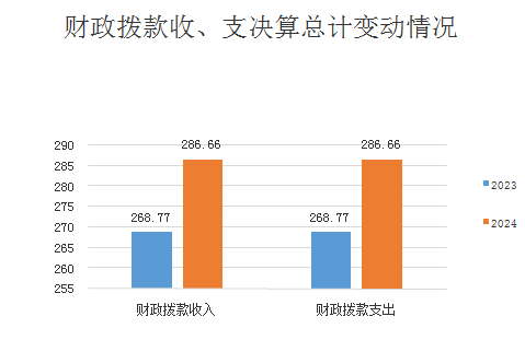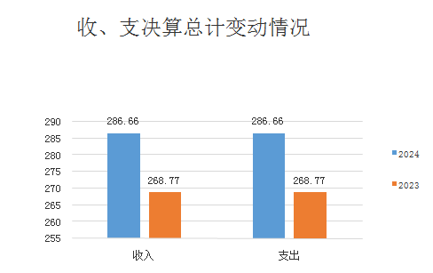 2024年度收、支总计均为286.66万元。与2023年度相比,收、支总计各增加17.89万元,增长11%。主要变动原因是本年度新增一名干部的人员经费和运转经费。