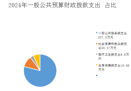2024年度一般公共预算财政拨款支出286.66万元,主要用于以下方面:一般公共服务支出227.2万元,占79%;教育支出0万元,占0%;科学技术支出0万元,占0%;文化旅游体育与传媒支出0万元,占0%;社会保障和就业支出30.37万元,占11%;卫生健康支出9.6万元,占3.3%;住房保障支出19.49万元,占6.7%。