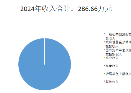 2024年度本年收入合计286.66万元,其中:一般公共预算财政拨款收入286.66万元,占100%;政府性基金预算财政拨款收入0万元,占0%;国有资本经营预算财政拨款收入0万元,占0%;上级补助收入0万元,占0%;事业收入0万元,占0%;经营收入0万元,占0%;附属单位上缴收入0万元,占0%;其他收入0万元,占0%。