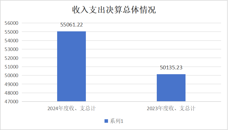 2024年度收、支总计均为55061.22万元。与2023年度相比,收、支总计各增加4925.99万元,增长9.83%。主要变动原因是S411交通项目收入。