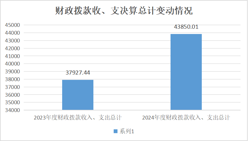 2024年度财政拨款收入、支出总计均为43850.01万元。与2023年度相比,财政拨款收入总计、支出总计各增长5922.57万元,增长15.62%。主要变动原因是政府性基金收入增加。