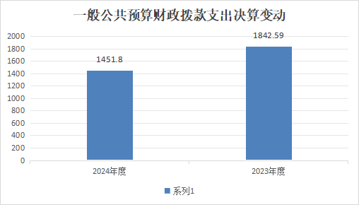 2024年度一般公共预算财政拨款支出1451.8万元,占本年支出合计的90.6%。与2023年度相比,一般公共预算财政拨款支出减少390.79万元,下降26.92%。主要变动原因是中、省项目资金量减少。