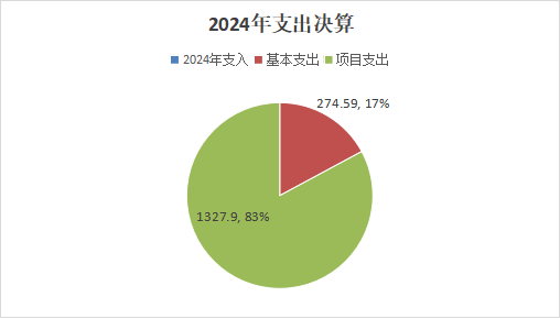 2024年度本年支出合计1602.49万元,其中:基本支出274.59万元,占17.14;项目支出1327.9万元,占82.86%;上缴上级支出0万元,占0%;经营支出0万元,占0%;对附属单位补助支出0万元,占0%。