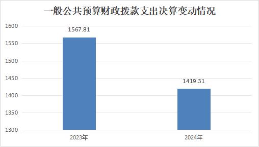 2024年度一般公共预算财政拨款支出1419.31万元,占本年支出合计的100%。与2023年度相比,一般公共预算财政拨款支出减少148.50万元,下降9.5%。主要变动原因是2024年度人员减少引起的工资福利支出、商品服务支出减少。
