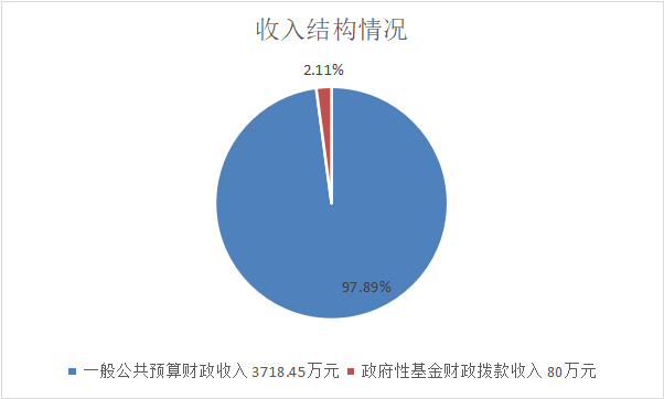 2024年度收入合计3798.45万元,其中:一般公共预算财政拨款收入3718.45万元,占97.89%;政府性基金预算财政拨款收入80万元,占2.11%.