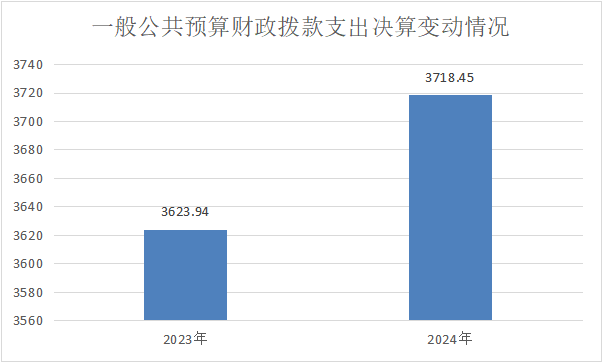 2024年度一般公共预算财政拨款支出3718.45万元,占本年支出合计的97.83%。与2023年度相比,一般公共预算财政拨款支出增加94.51万元,增长2.61%。主要变动原因是人员增加导致人员经费增加及项目支出增加。