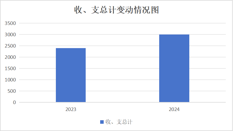 2024年度收、支总计均为2996.03万元。与2023年度2399.15万元相比,收、支总计各增加596.88万元,上升24.88%。主要变动原因是预算项目增加。