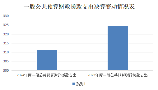 2024年度一般公共预算财政拨款支出311.5万元,占本年支出合计的28.53%。与2023年度324.69万元相比,一般公共预算财政拨款支出减少13.19万元,下降4.06%。主要变动原因是预算项目减少。