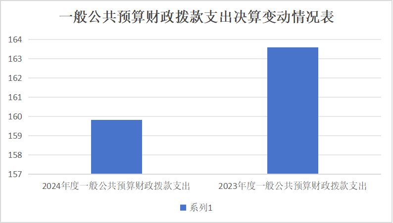 2024年度一般公共预算财政拨款支出159.83万元,占本年支出合计的52.57%。与2023年度163.59万元相比,一般公共预算财政拨款支出减少3.76万元,下降2.3%。主要变动原因是预算项目减少。