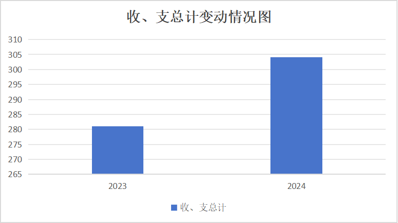 2024年度收、支总计均为304.02万元。与2023年度280.99万元相比,收、支总计各增加23.03万元,上升8.2%。主要变动原因是预算项目增加。