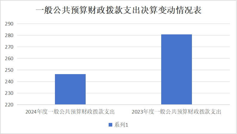 2024年度一般公共预算财政拨款支出246.38万元,占本年支出合计的47.58%。与2023年度280.86万元相比,一般公共预算财政拨款支出下降34.48万元,下降12.28%。主要变动原因是预算项目减少。