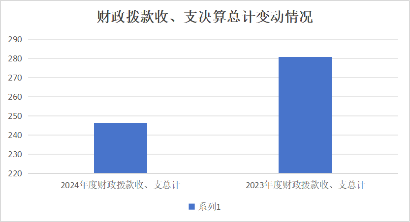 2024年度财政拨款收、支总计均为246.38万元。与2023年度280.86万元相比,财政拨款收、支总计各下降34.48万元,下降12.28%。主要变动原因是预算项目减少。