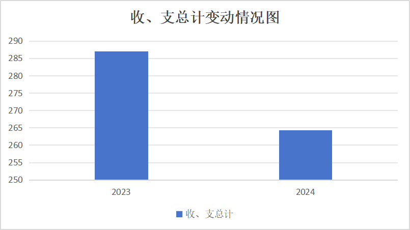 2024年度收、支总计均为264.28万元。与2023年度287.04万元相比,收、支总计各减少22.76万元,下降7.92%。主要变动原因是预算项目减少。