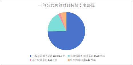 2024年度一般公共预算财政拨款支出138.75万元,主要用于以下方面:一般公共服务支出103.81万元,占74.82%;社会保障和就业支出24.68万元,占17.79%;卫生健康支出3.16万元,占2.28%;住房保障支出7.10万元,占5.11%;
