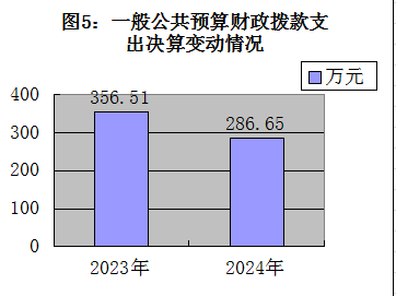 2024年一般公共预算财政拨款支出286.65万元,占本年支出合计的100%。与2023年相比,一般公共预算财政拨款支出增加69.86万元,,减少19.6%。2024年公务员减少1人,公用经费减少;信访量下降,信访维稳专项减少。
