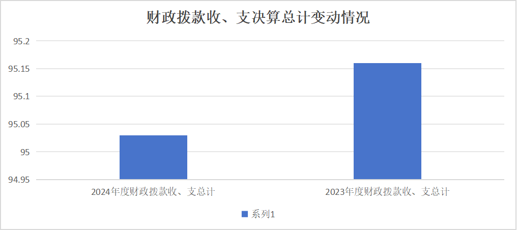 2024年度财政拨款收、支总计均为95.03万元。与2023年度95.16万元相比,财政拨款收、支总计各减少0.13万元,下降0.14%。主要变动原因是预算项目减少。
