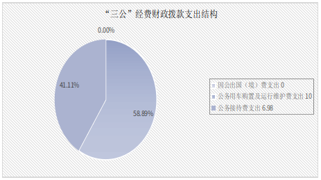 2024年度“三公”经费财政拨款支出决算中,因公出国(境)费支出决算0万元,占0%;公务用车购置及运行维护费支出决算10万元,占58.89%;公务接待费支出决算6.98万元,占41.11%。具体情况如下: