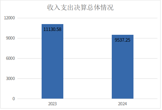 2024年度收、支总计均为9537.25万元。与2023年度相比,收、支总计各减少1593.33万元,缩减14.31%。主要变动原因是2024 年度项目建设减少。