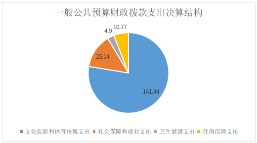 2024年度一般公共预算财政拨款支出182.25万元,主要用于以下方面:文化旅游体育与传媒支出141.44万元,占77.61%;社会保障和就业支出25.14万元,占13.79%;卫生健康支出4.9万元,占2.69%;住房保障支出10.77万元,占5.91%。