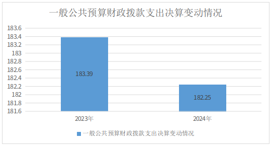 2024年度一般公共预算财政拨款支出182.25万元,占本年支出合计的100%。与2023年度相比,一般公共预算财政拨款支出减少1.14万元,减少0.62%。主要变动原因是人员经费减少,新增退休人员。