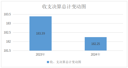 2024年度收、支总计均为182.25万元。与2023年度相比,收、支总计减少1.14万元,减少0.62%。主要变动原因是人员经费减少,新增退休人员。