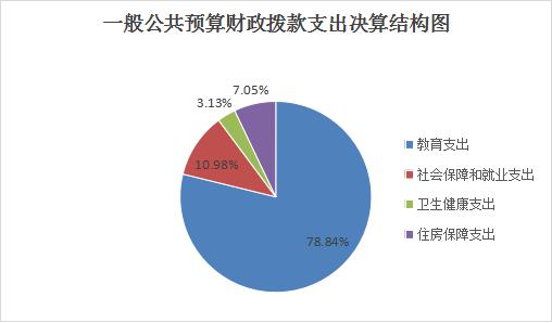 2024年度一般公共预算财政拨款支出99.53万元,主要用于以下方面:教育支出78.46万元,占78.84%;社会保障和就业支出10.93万元,占10.98%;卫生健康支出3.11万元,占3.13%;住房保障支出7.02万元,占7.05%。