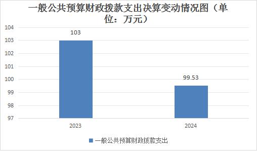 2024年度一般公共预算财政拨款支出99.53万元,占本年支出合计的100%。与2023年度相比,一般公共预算财政拨款支出减少3.47万元,下降3.37%。主要变动原因是人员类经费减少。