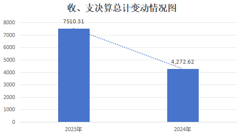 2024年度收、支总计均为4,272.62万元。与2023年度相比,收、支总计各减少3237.69万元,下降43%。主要变动原因是2023年教室灯光、多媒体教室及校园网改造等项目完成,2024年项目资金支出减少。