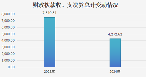 2024年度财政拨款收、支总计均为4,272.62万元。与2023年度相比,财政拨款收、支总计各增加/3237.69万元,下降43%。主要变动原因是2023年教室灯光、多媒体教室及校园网改造等项目完成,2024年项目资金支出减少。