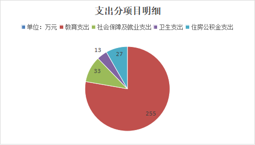 2024年度一般公共预算财政拨款支出328万元,主要用于以下方面:教育支出255万元,占78%;社会保障和就业支出33万元,占10%;卫生健康支出13万元,占4%;住房保障支出27万元,占8%。