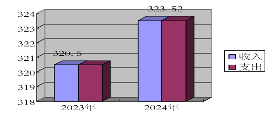 2024年度收、支总计均为323.52万元。与2023年度相比,收、支总计各增加3.02万元,增长0.9%。主要变动原因是项目收支增加,人员经费增加。