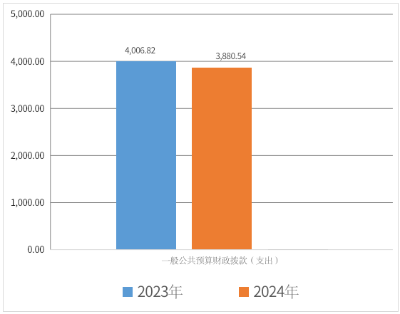 2024年度一般公共预算财政拨款支出3880.54.万元,占本年支出合计的89.52%。与2023年度相比,一般公共预算财政拨款支出减少126.28万元,下降3.25%。主要变动原因是项目经费减少。