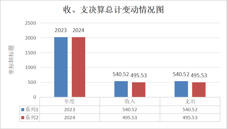 2024年度收、支总计均为495.53万元。与2023年度收、支总计540.52万元相比,收入减少44.99万元,减少8.32%。主要原因是学生减少。