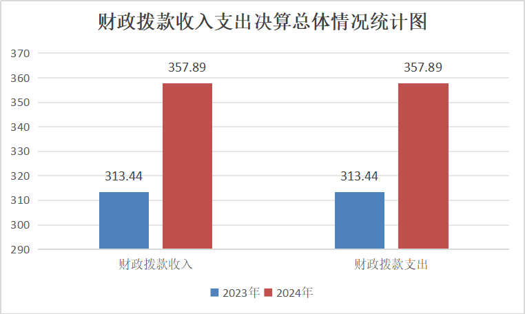 2024年财政拨款收入总计357.89万元、支出总计357.89万元。与2023年相比,财政拨款收、支总计增加44.45万元,约增长14.18%。主要变动原因是幼儿园人员增加,项目收入、支出大幅度增加。