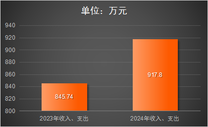 2024年度收、支总计均为917.8万元。与2023年度845.74万元相比,收、支总计各增加72.06万元,增长8.52%。主要变动原因是主要变动原因是幼儿园改造资金的投入。