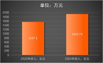 2024年总收入、支出1938.78 万元,较上年收入、支出1567.50增加371.28万元,增加23.69%。主要变动原因是本年增加土地出让金及退休人员生活补助。