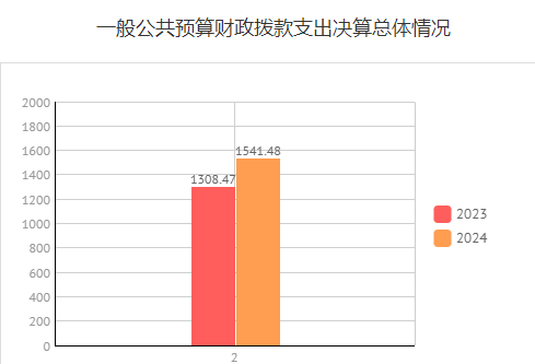 2024年一般公共预算财政拨款支出1541.48万元,占本年支出合计的100%。与2023年相比,一般公共预算财政拨款支出增加了233.01万元,增加了17.8%。主要变动原因是增加了人员工资调标、薄改设备购置、教育扶贫专项等费用。