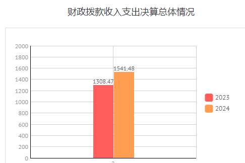 2024年财政拨款收、支总计1541.48万元。与2023年相比,财政拨款收、支总计增加233.01万元,增加17.8%。主要变动原因是增加了人员工资调标、薄改设备购置、教育扶贫专项等费用。
