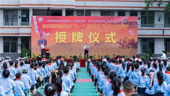 仪式上,省老促会会长董玉梅向旺苍刘瑞龙红军小学授“红色教育基地”牌匾。