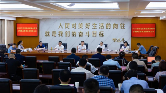 为提升全县应对大规模新冠疫情处置能力和水平,检验应对极端条件下全域静态管理预案的科学性、可操作性,6月16日,旺苍县召开新冠肺炎疫情全域静态管理桌面推演会议。县委书记唐文辉观摩桌面推演并讲话,市政府副秘书长李庆华出席会议并讲话。