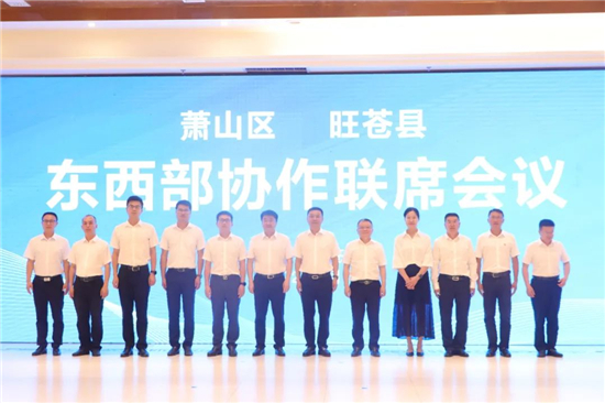在2022年萧山区--旺苍县东西部协作联席会议上,与会人员观看了萧山旺苍东西部协作宣传片,举行了萧山区政府向旺苍县政府资金捐赠仪式及东西部产业协作项目签约仪式,并进行了萧山职工疗休养基地揭牌和萧山旺苍东西部协作脑血管病诊疗中心授牌。