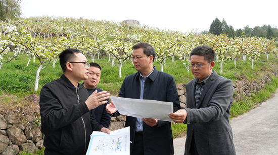 在大德镇,郭金桥详细了解黄柏村梨园基地梨果产业发展、s17南三高速互通和金溪—大德美丽乡村示范路项目规划、罗平河道清淤及河道水环境提升等情况。他强调,产业振兴是增强农业农村内生发展动力的源泉,是乡村全面振兴的基础和关键,要切实加强对梨果产业的管护,提高产业发展质量和效益,完善联农带农机制,推动村集体经济发展壮大,为当地农民增收致富提供有力支撑。交通发展有利于激活山区的经济活力,要高度重视交通建设在乡村振兴中的基础作用,统筹考虑区域发展、交通流量、群众需求等方面,注重因地制宜,加强协作配合,及时解决项目规划建设过程中的难点、堵点、卡点问题,做好项目的全过程服务保障工作。要以人为本,注重生态环境保护,严格落实河长制,加强对河道的日常巡查和管理,确保河道畅通、水质良好,特别是假期临近,相关部门和单位要加强安全宣传教育,提高群众安全意识,确保假期期间河道周边无事故发生。
