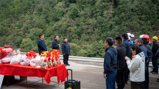 杨祖斌一行深入项目施工现场,与项目现场负责人亲切交谈,实地察看项目推进情况,详细了解项目规划设计、建设进度、要素保障等情况,现场协调解决难点堵点问题。在项目现场,杨祖斌还看望慰问奋战在一线的建设者,关心了解他们的工作生活情况,勉励大家继续发扬不怕艰苦、连续作战的精神,继续保持良好态势,早日把s301檬天公路(双汇至檬子段)建设成高品质旅游路、民生路、致富路。