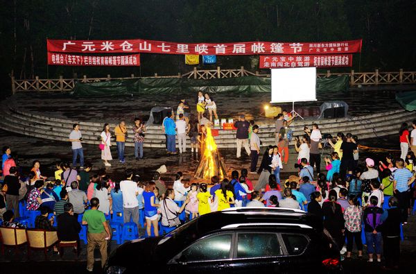 川公网安备 51082102000002号由旺苍县旅游局、米仓山自然保护区管理局主办,宝中旅游、四川新东方国际旅行社承办的首届米仓山帐篷节于6月28日在鼓城山-七里峡景区举行。来自广元、绵阳、成都等地的户外运动爱好嘉宾参加了开幕式晚会。晚会节目丰富多彩,嘉宾积极参与互动,把晚会推向了一个又一个高潮。